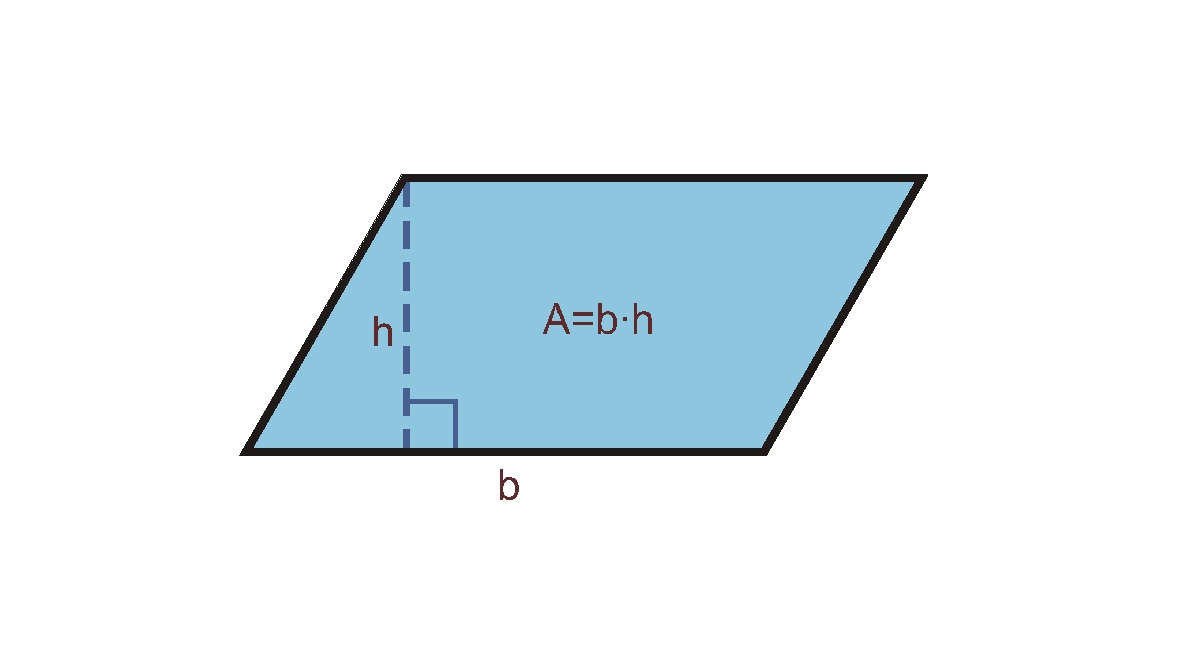 Imagen que muestra un paralelogramo la medida de sus lados y la fórmula para calcular su área