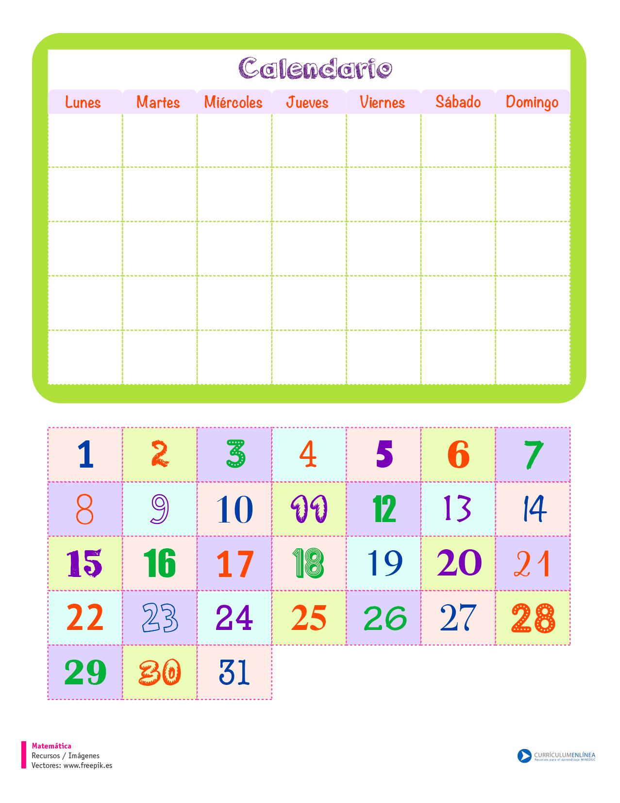 Imagen que muestra un calendario que se puede completar con material recortable.