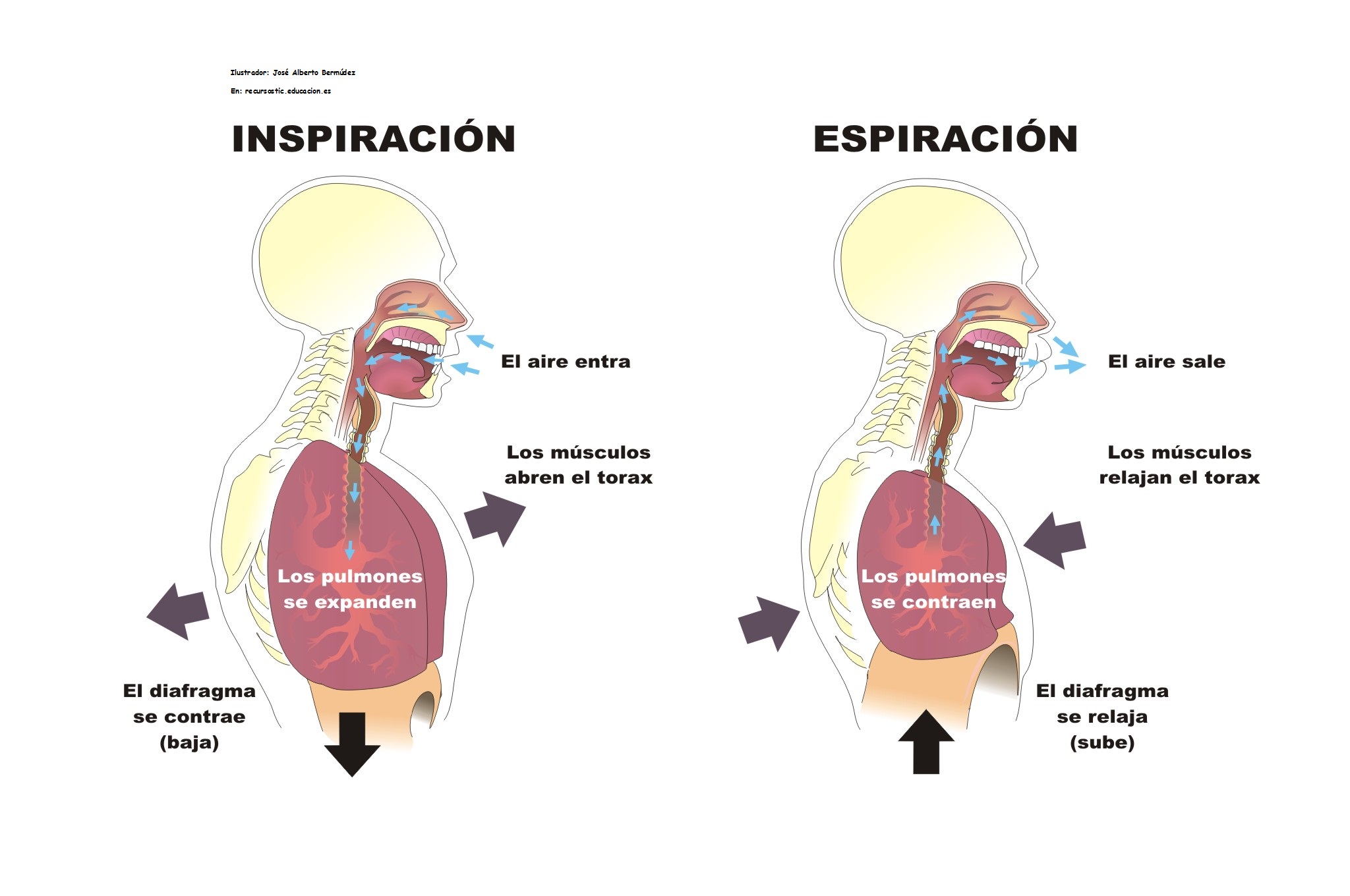 La inspiración y espiración rotulado