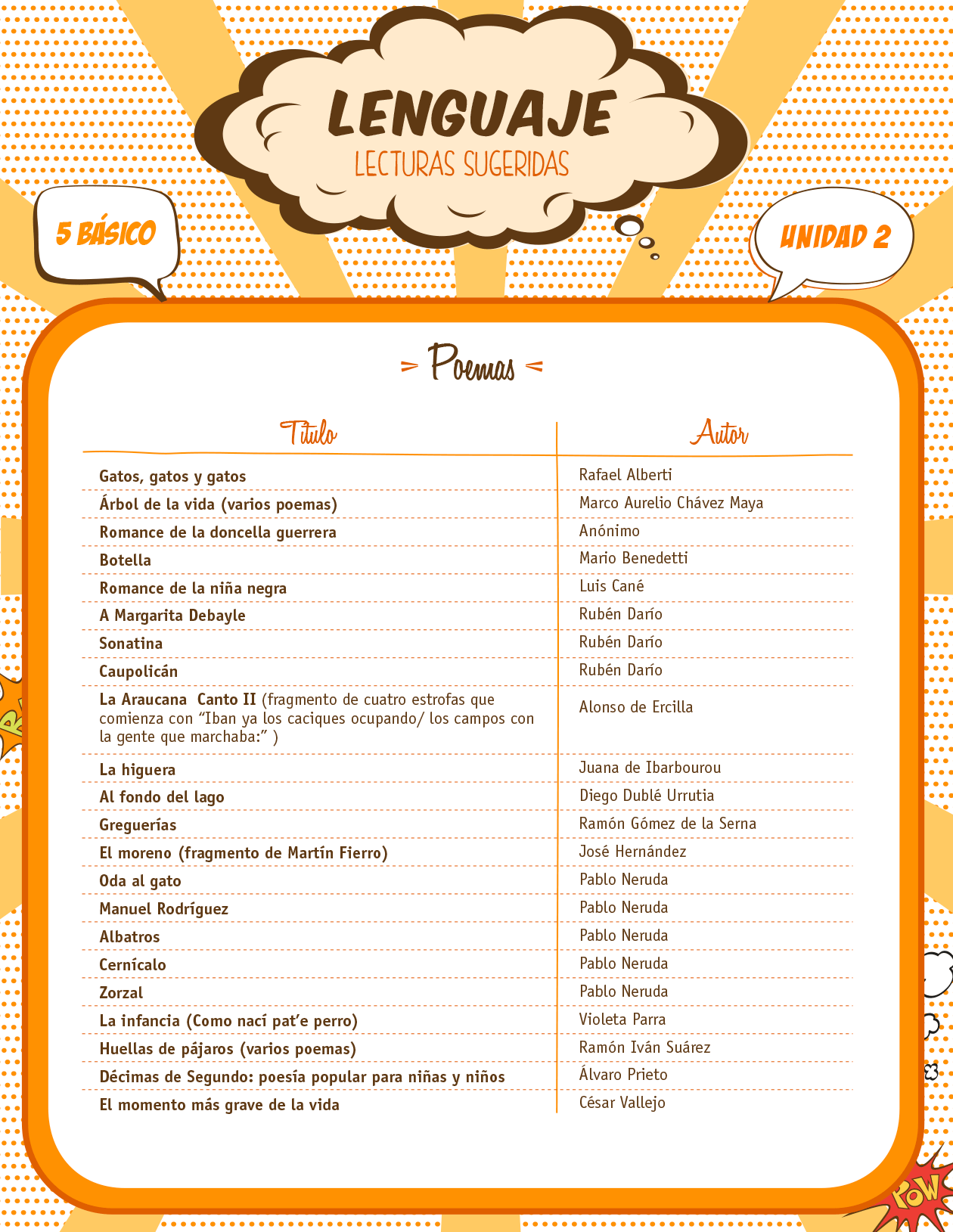 Lecturas sugeridas para la unidad 2: poemas