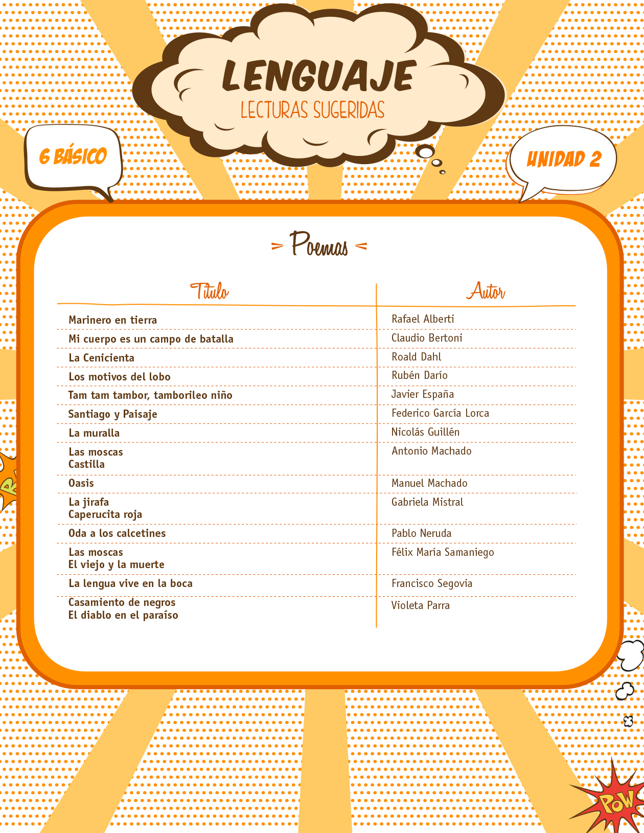 Lecturas sugeridas para la unidad 2: poemas