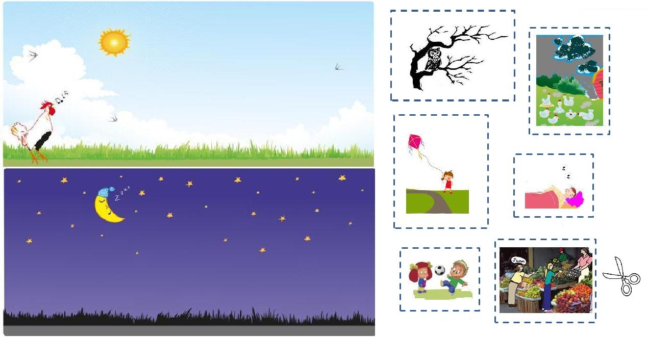 Imagen que muestra acciones que se realizan de día o de noche