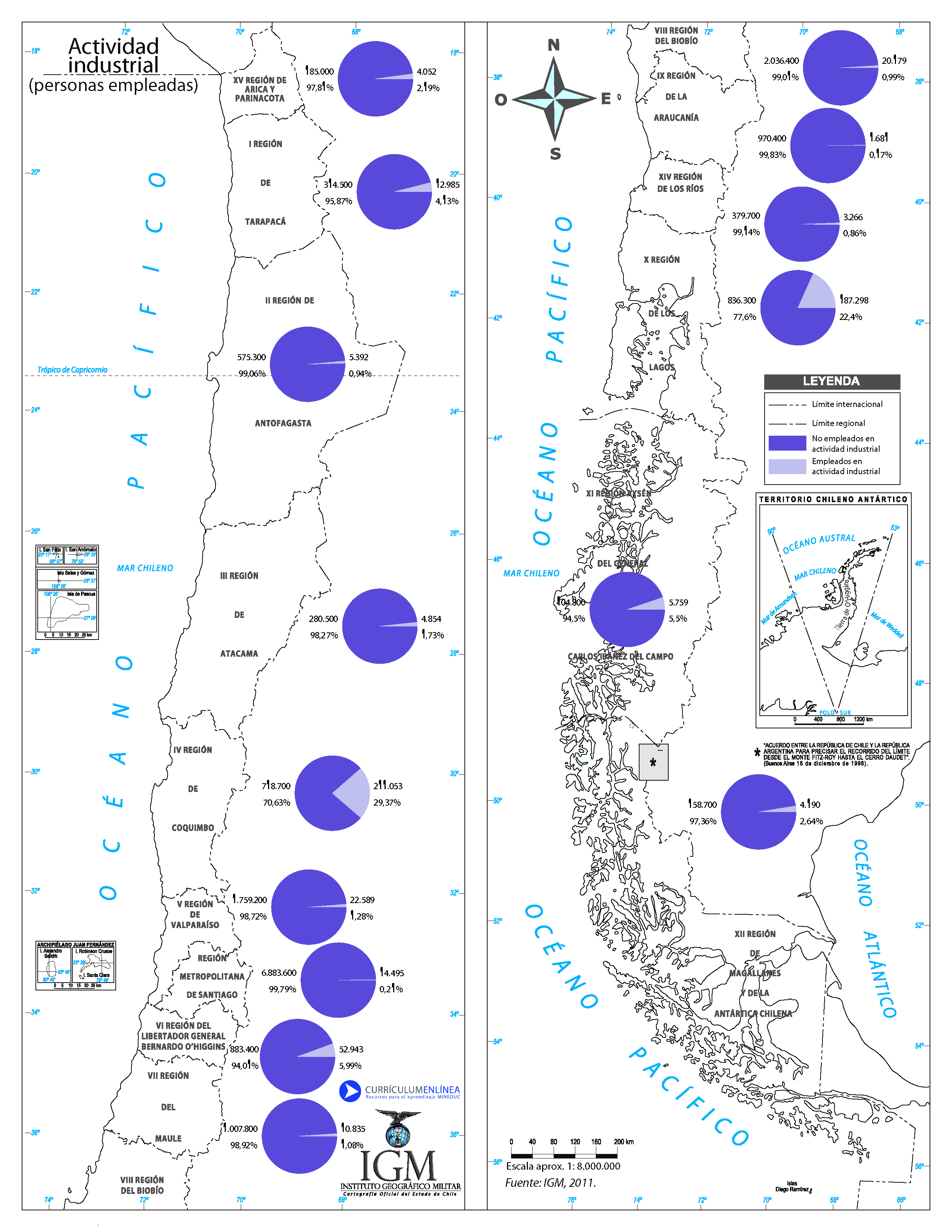 Mapa actividad industrial Chile color