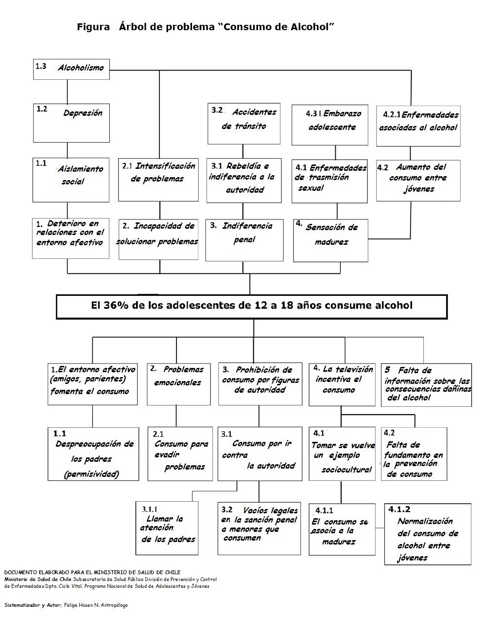 Mapa conceptual de problemas asociados con el alcohol elaborado por el ministerio de salud de chile