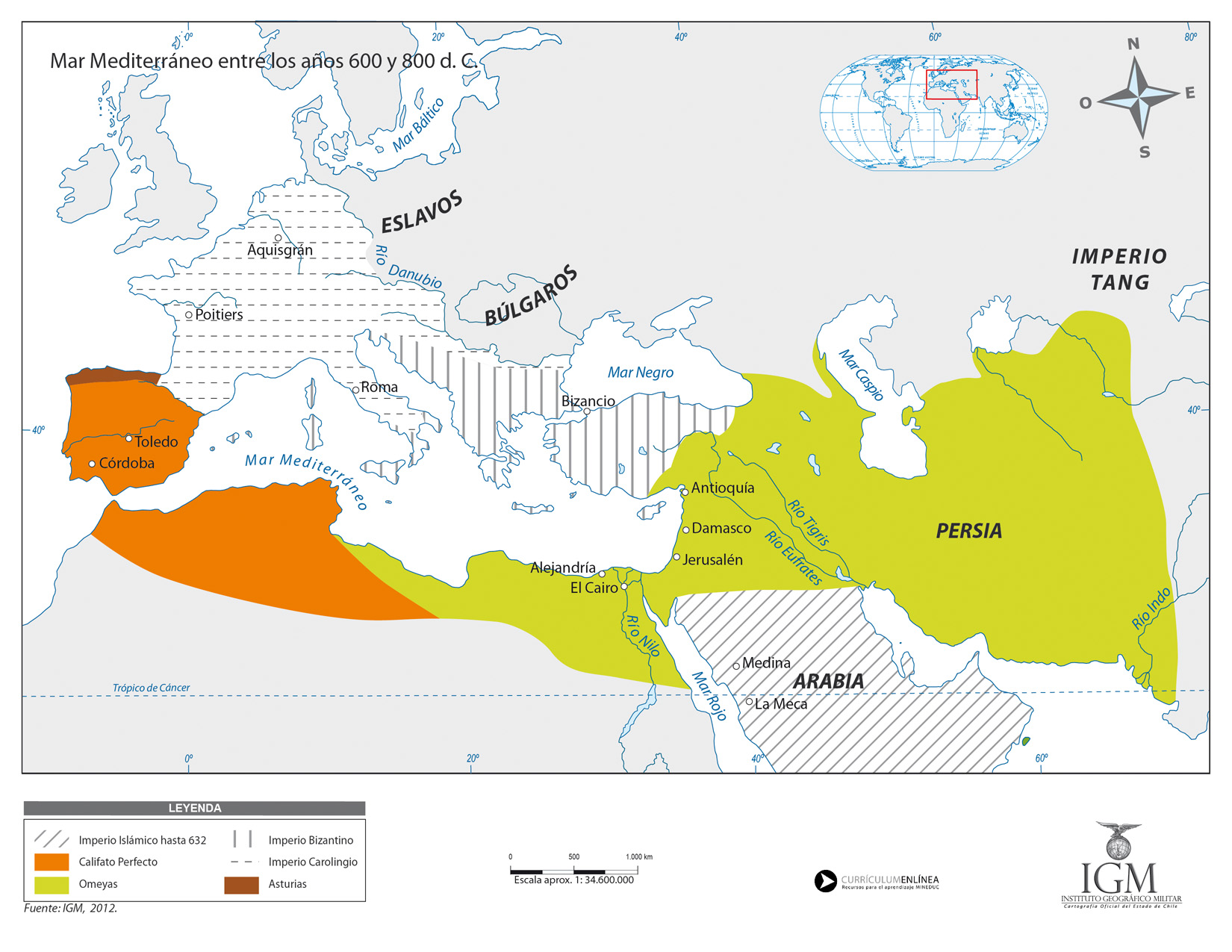 Mar Mediterráneo entre los año 600 y 800 d.C
