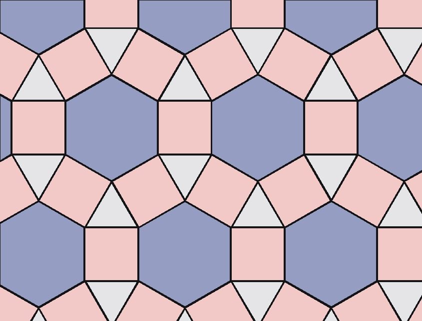 Imagen de una teselación con triángulos, cuadrados y hexágonos.