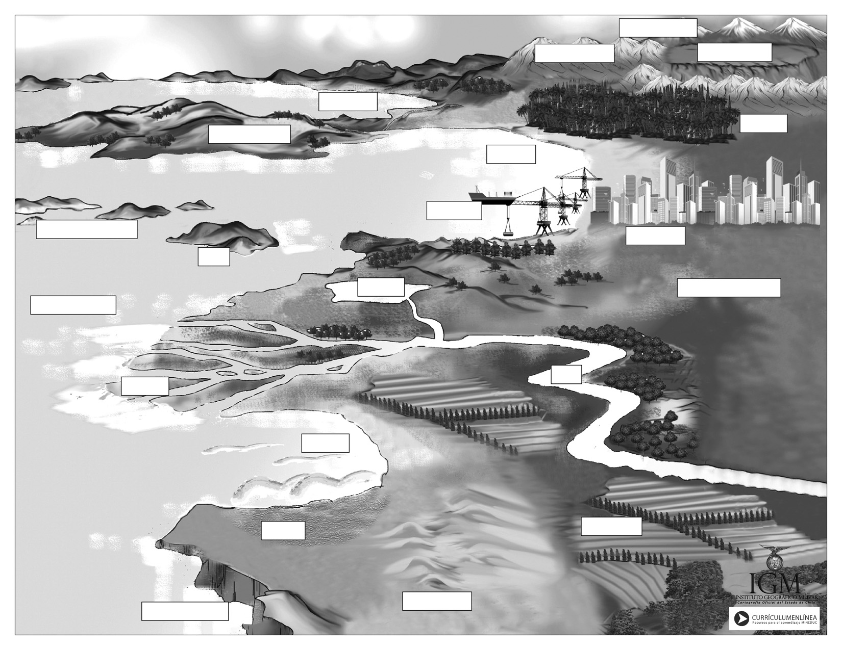 Imagen con los nombres geográficos para que los alumnos lo completen