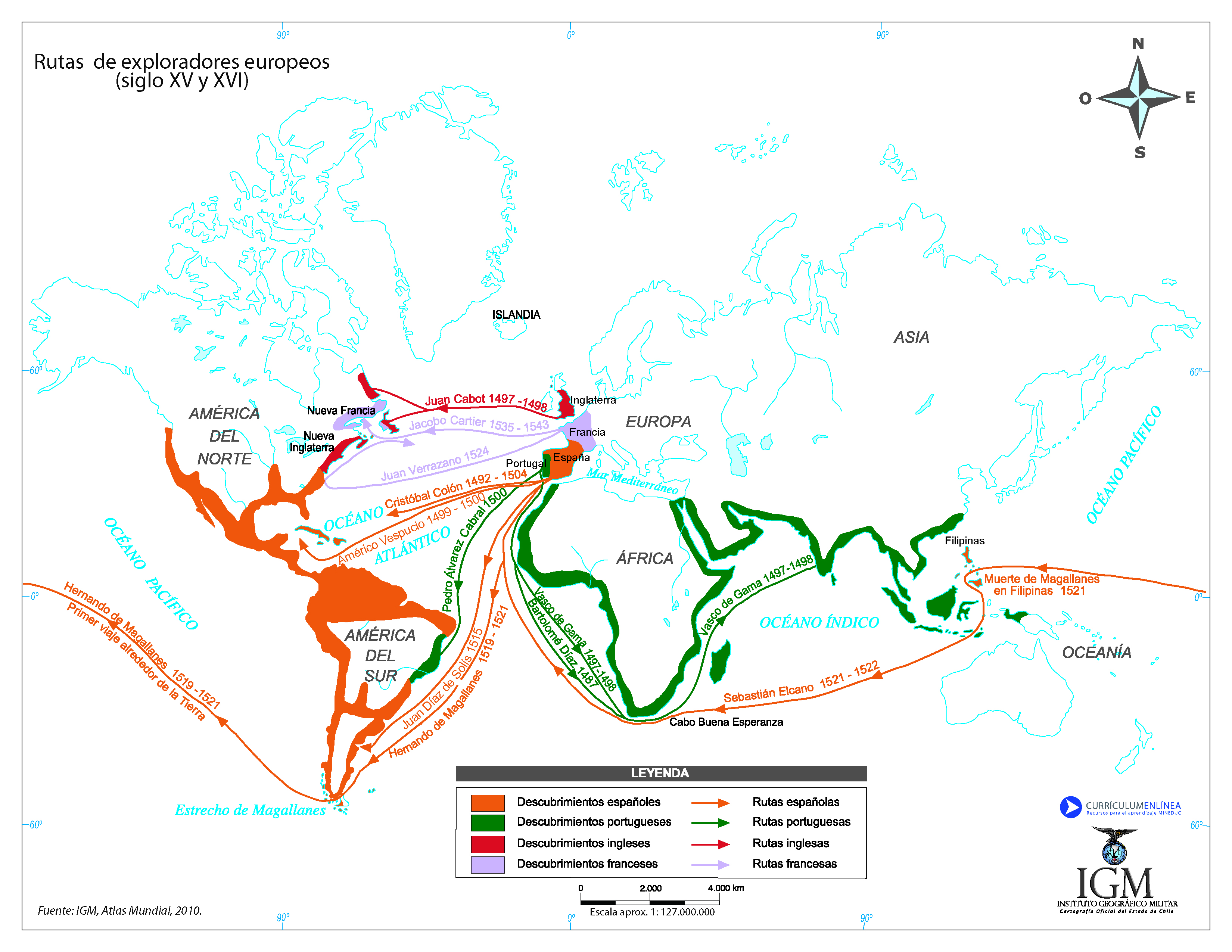 Rutas de exploradores europeos (siglo XV y XVI)